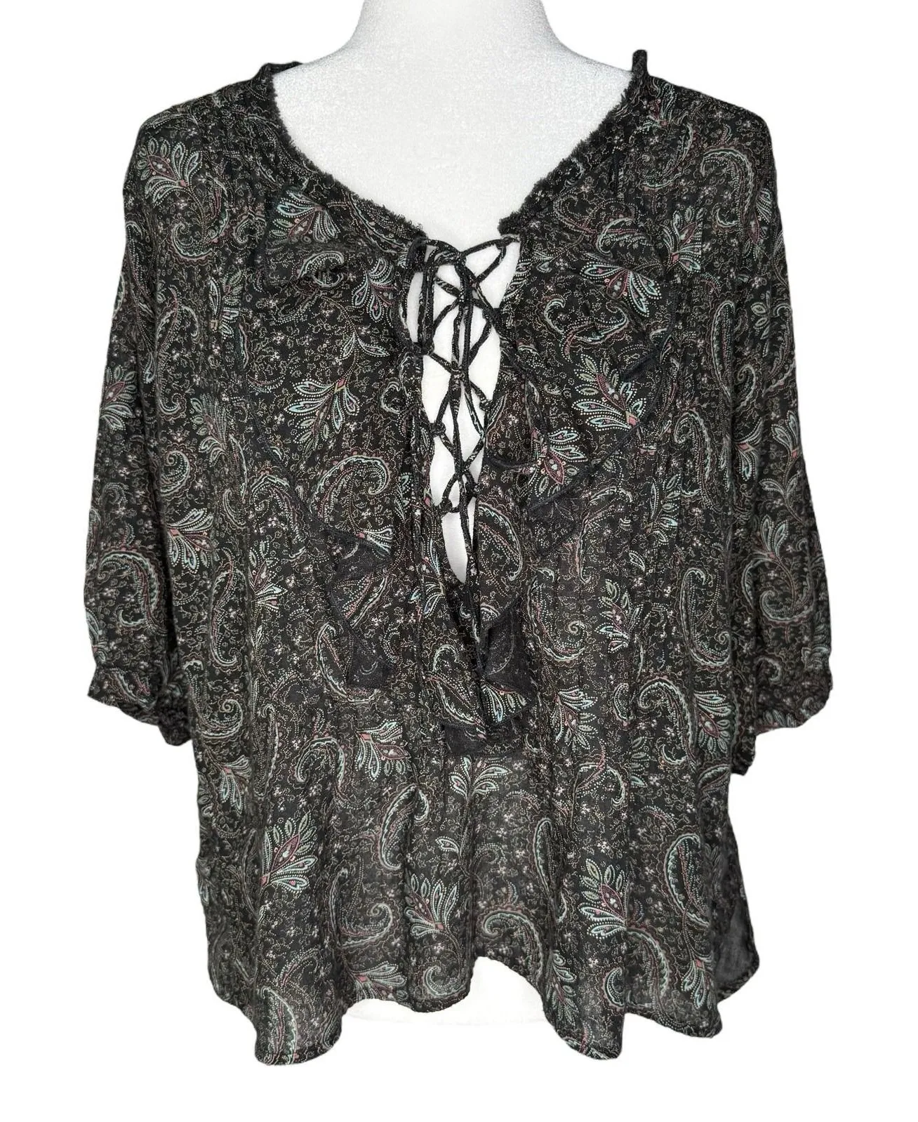 Ralph Lauren Denim & Supply S Lace Up Top Boho Peasant Gypsy Blouse Excellent condition Puff sleev... Show more