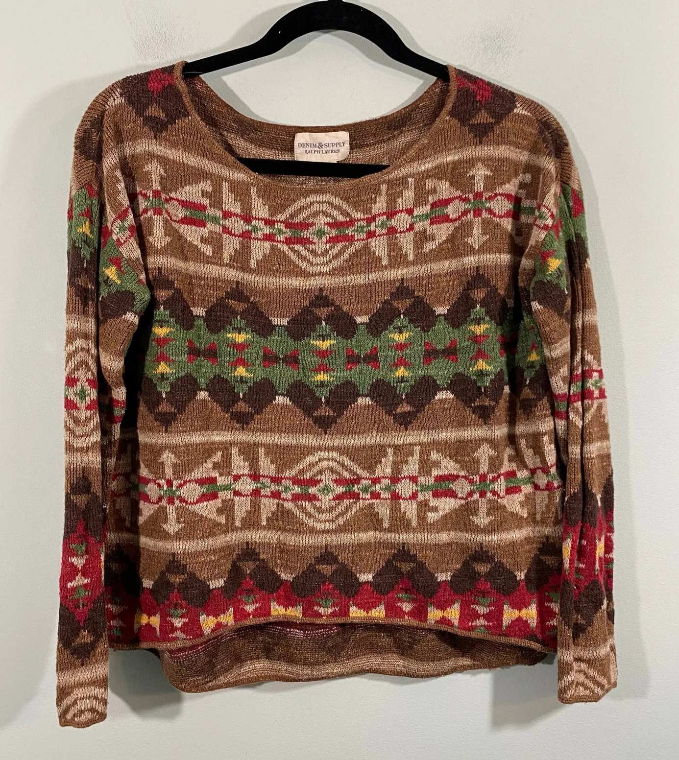 Denim & Supply Ralph Lauren Women Lightweight Aztec Southwestern Sweater - Size M - Excellent pre-owned condition - Measurements: armpit to armpit: 22, length: 22, sleeve length: 17.5 All measurements were taken with product flat lay Please refer to pictures for material content Feel free to contact me for more pictures or questions