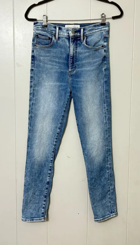 Flattering and timeless, these Denim Forum “The Lola” High Rise Skinny Crop Jeans are your go-to pair for everyday wear. Crafted from premium stretch denim that hugs your shape in all the right places, these jeans feature a flattering high-rise waist and a cropped skinny leg that pairs perfectly with sneakers, boots, or heels. W:13.5” R:11.5” I:25.5” LO:5” 81% Cotton 11%Lyocell 6% elastane 2% Elastane • Brand: Denim Forum (by Aritzia) • Style: The Lola High Rise Skinny Crop • Size: 27 • Wash: Light Blue • Fit: High rise, skinny leg, cropped length • Condition: Excellent preowned — no flaws noted • Style#: Classic stretch denim, soft feel, flattering fit Perfect for creating that effortlessly chic, lived-in look. Denim Forum jeans, Aritzia denim, Lola skinny jeans, high rise crop jeans, women’s size 27 jeans, light wash denim, flattering skinny jeans, everyday denim, classic fit jeans, minimalist wardrobe, capsule closet, casual chic jeans #DenimForum #AritziaJeans #TheLola #HighRiseJeans #SkinnyCrop #LightWashDenim #EverydayStyle #CasualChic #CapsuleWardrobe #PoshStyle #ClassicDenim #AritziaStyle #DenimGoals #WardrobeEssentials 425