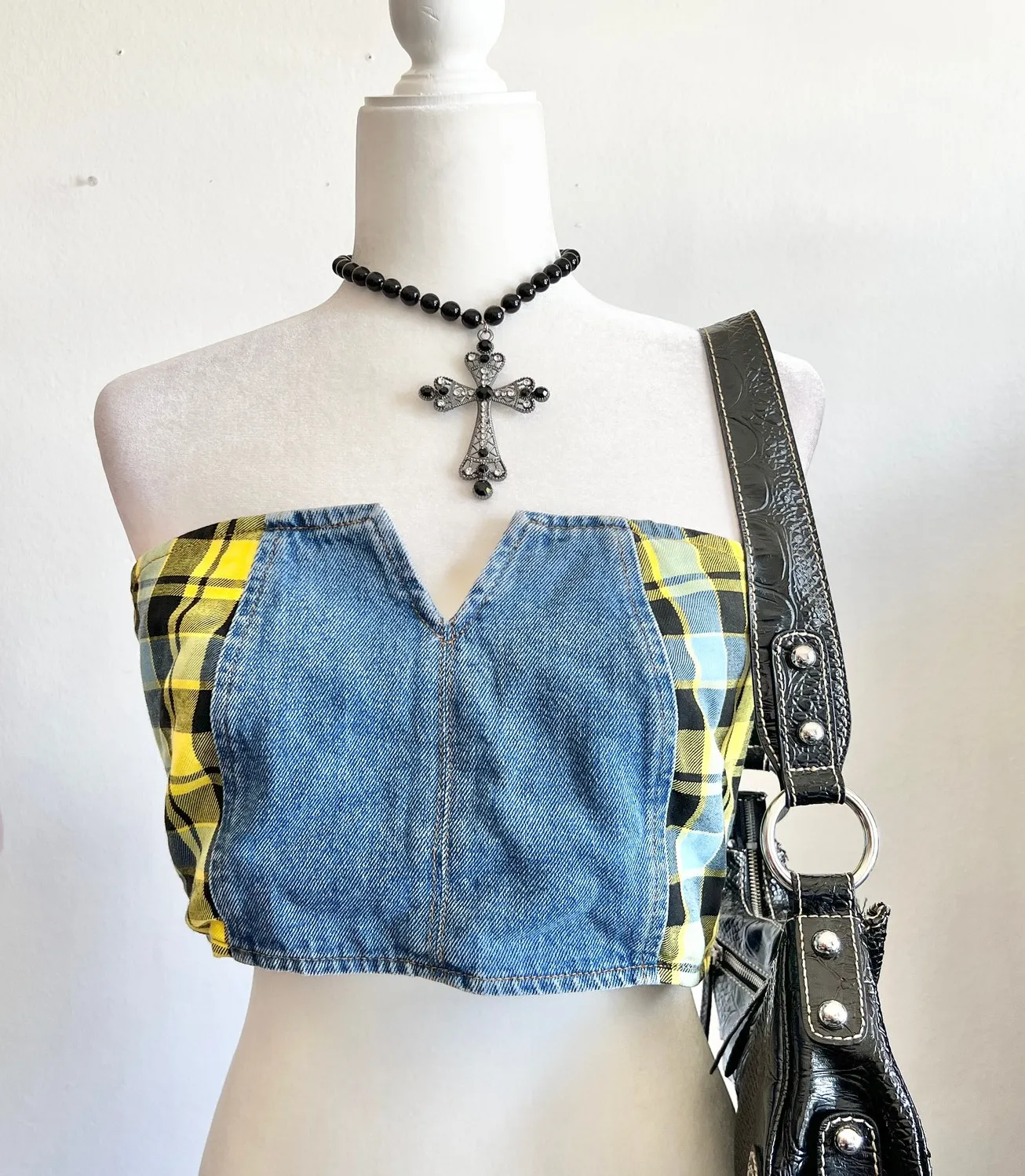 Denim Plaid Corset‎ Top, Grunge Y2K Punk Mall Goth Medium Indie Sleaze - $11 - From Kenia