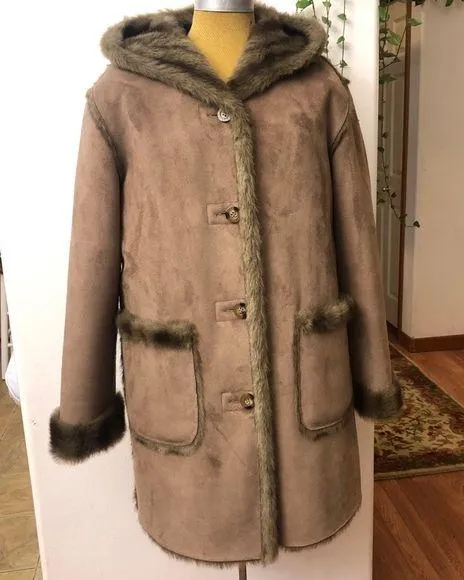 Coat Reversible Faux Suede Fur Mink Brown Hooded Size M - $65 - From Maryna