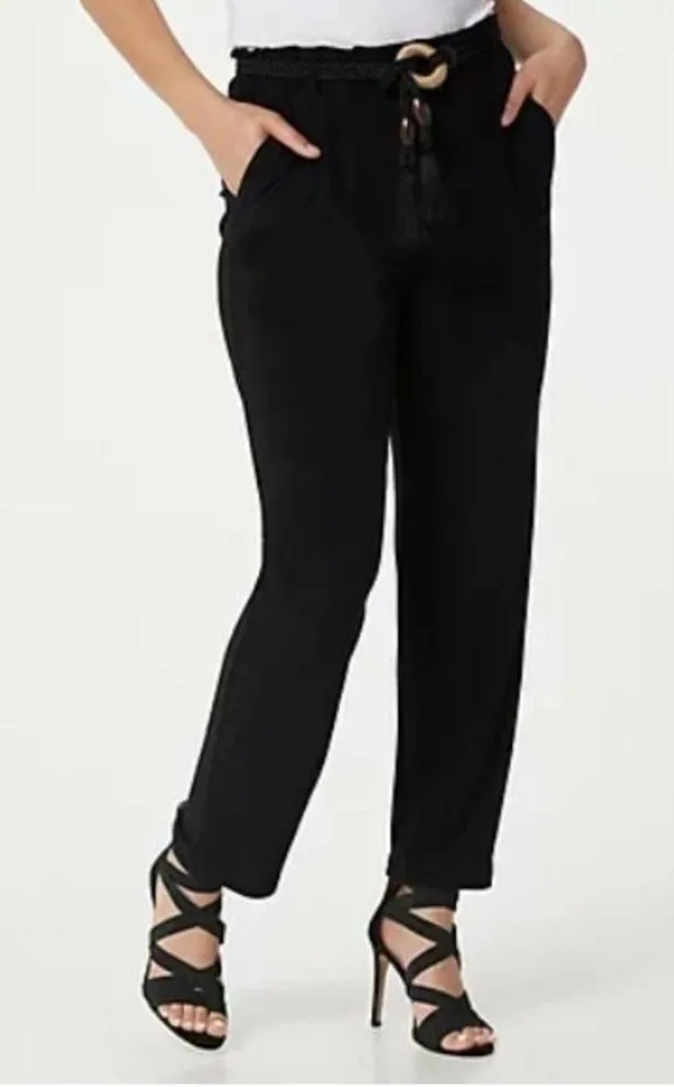 Dennis Basso knit elastic waist black pants rope belt L new Size L - $30 - From Anna