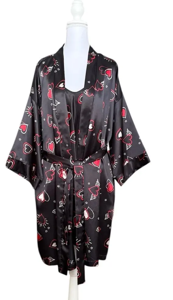 2pc Dentelle Vintage Nightgown & Robe Set Nightie Slip Dress All over heart print Size L Nightgown h... Show more
