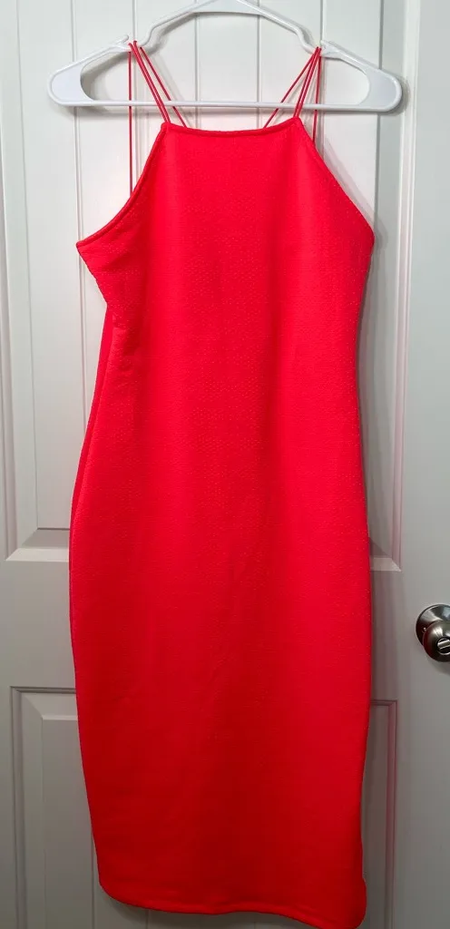 Derek Heart women’s hot pink stretch textured strappy bodycon midi dress Size large Brand new with t... Show more