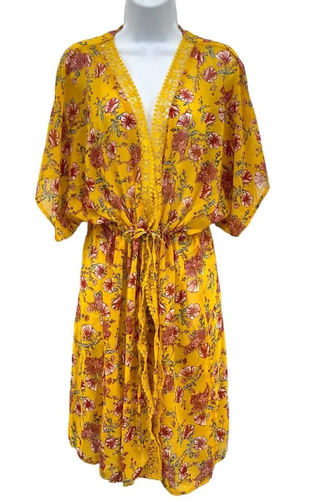 This Derek Heart cover up is perfect for any bohemian-themed festival or beach day. The vibrant flor... Show more