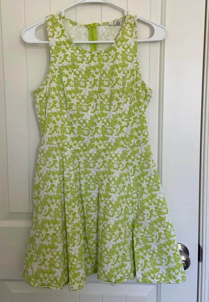 Women’s Derek Heart dress. Dress is green and white floral print patterned with a sleeveless cut and... Show more