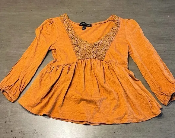 Charming peasant top by Derek Heart, featuring a vibrant orange hue. This blouse showcases a flatter... Show more