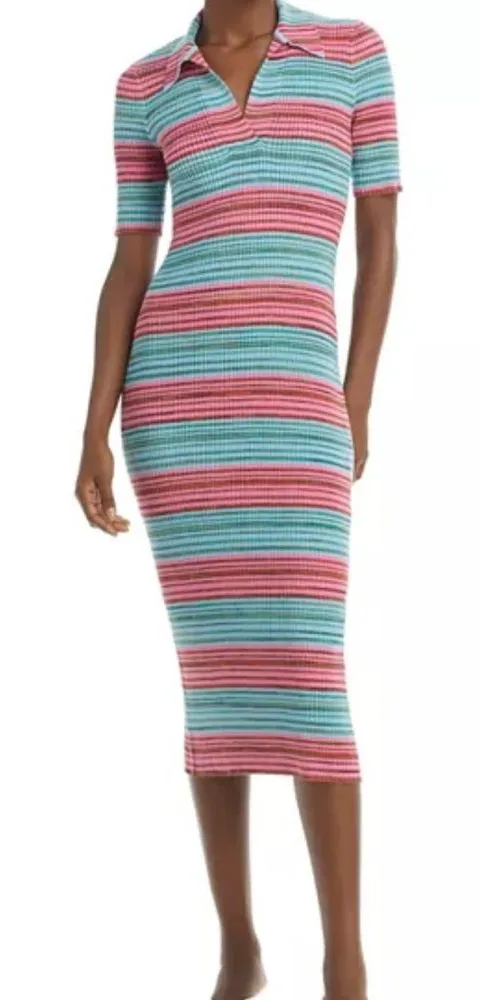 Derek Lam 10 Crosby Cianna Striped Ribbed Cotton Blend Polo Collar Sweater Dress Pink Size L - $98 - From Marisa