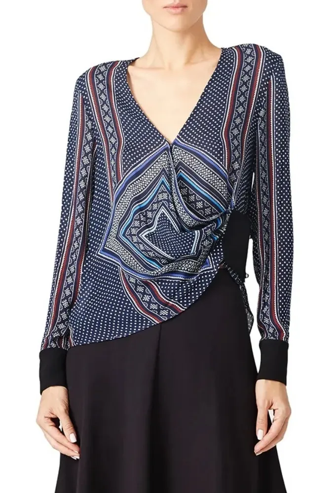 Wrap Long Sleeve V-Neck Patterned Womens Blouse Designed with a sophisticated pattern, it features... Show more