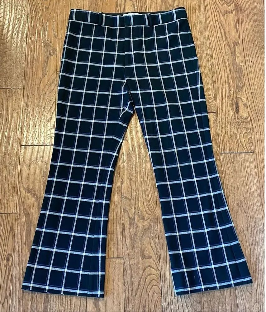 Brand: Derek Lam 10 Crosby Description: windowpane stretch poly high rise crop pant Size: 10 Color: black blue white multi Condition: Gently Worn Very Good šš» Measurements: Waist: 15.5ā Rise: 11ā Inseam 26ā **Bundle and Save!!** all measurements are approximate and taken laying down A38