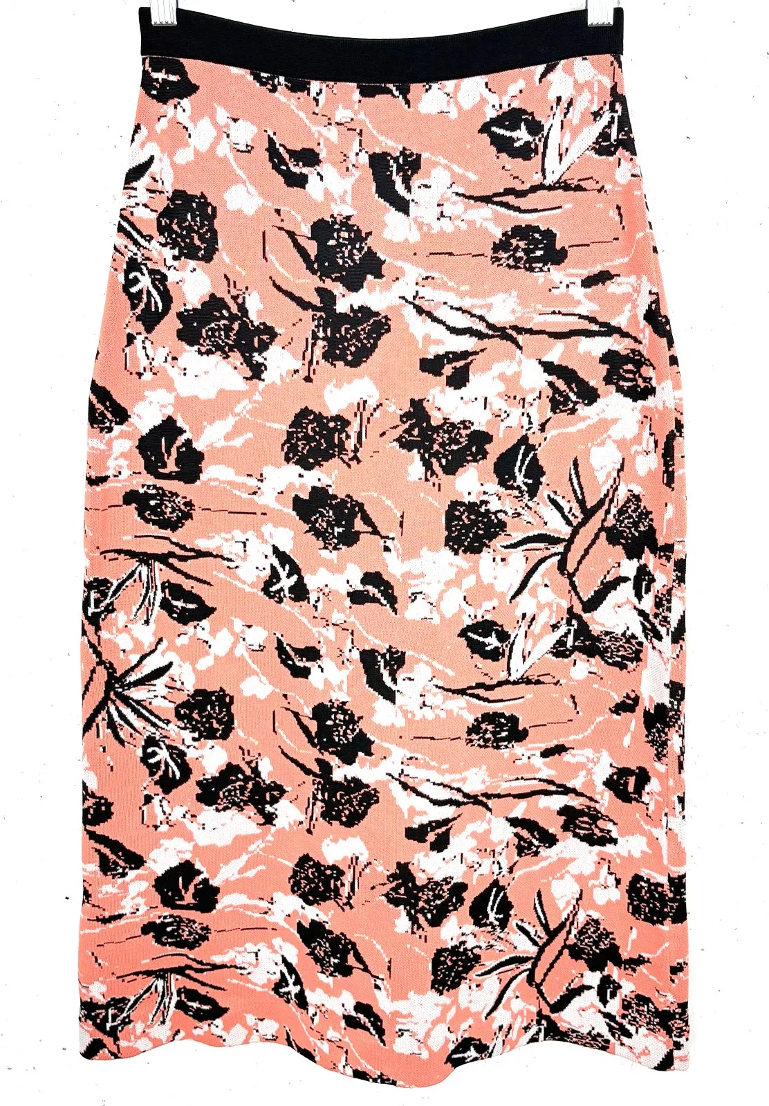 Derek Lam 10 Crosby Floral Knit Midi Skirt Coral Black Waistband Size XS - based on measurements. E... Show more