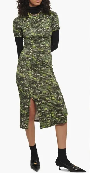 Derek Lam Lucielle Camo Ruched Studded‎ Midi Dress NWOT SIZE XS Green - $21 - From Desiree