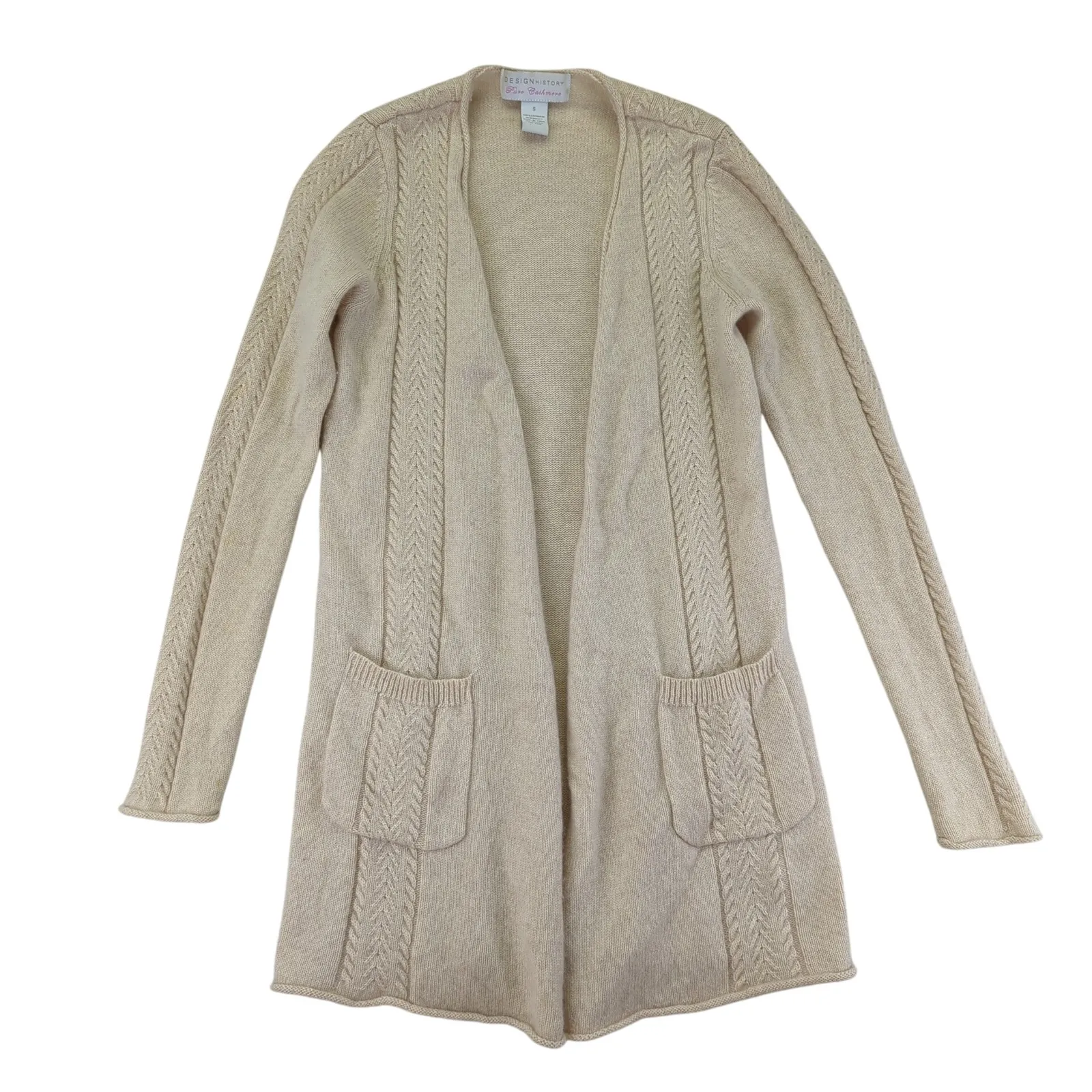 See photos for discoloration. Style: Cardigan Department: Women Material: 100% Cashmere Neckline: Open Neckline Type: Sweater Sleeve Length: Long Sleeve Features: Pockets, Open Pattern: Solid Sleeve Type: Raglan Sleeve Fabric Type: Knit Accents: Crochet Keywords: cashmere sweater, designer cardigan, cable knit, longline, open front, pockets, neutral, cozy, winter, fall fashion, layering, classic, minimalist Please see photos for signs of wear, if any. Thanks for checking out my store! I have lots of items available to bundle. Happy to accept offers!