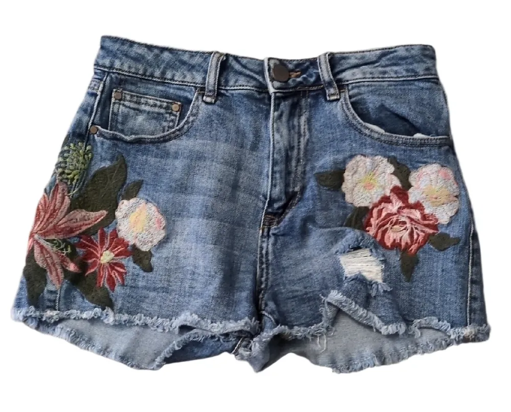 Design Lab Lord & Taylor Distressed Fringe Floral Denim Shorts Size 27 Blue - $50 - From Linda