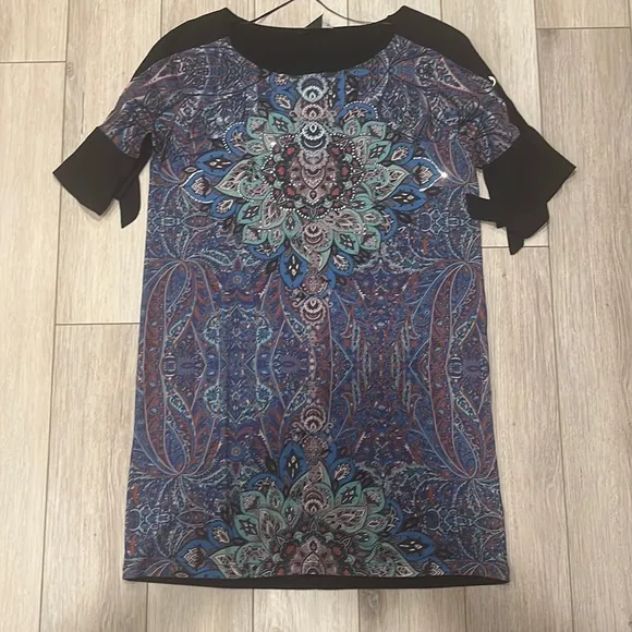 Desigual | Blue/Black Patterned T-Shirt Dress Bell Sleeves Size XL - $32 - From Savannah