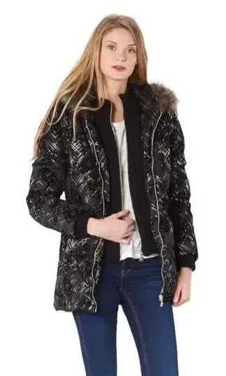 Desigual Womens Parka Black Gold Puffy Sweater Inset Hooded Faux Fur Size 6 NWT Condition: New with... Show more