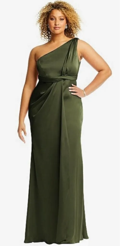 Dessy Collection 3111 One Shoulder Satin Gown Olive Green 22W - $149 New With Tags - From Nordic