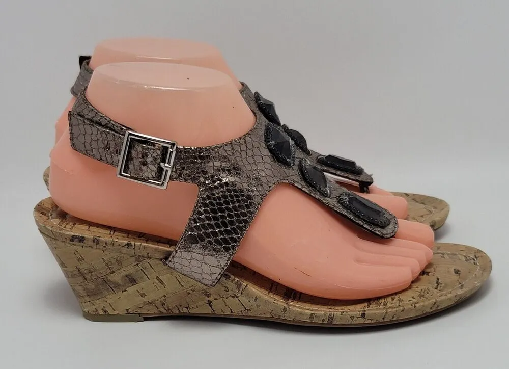 Dex Flex T Strap Metallic Thong Wedge Sandal Gem Stone Jeweled Size 8.5 Silver - $22 - From Linda