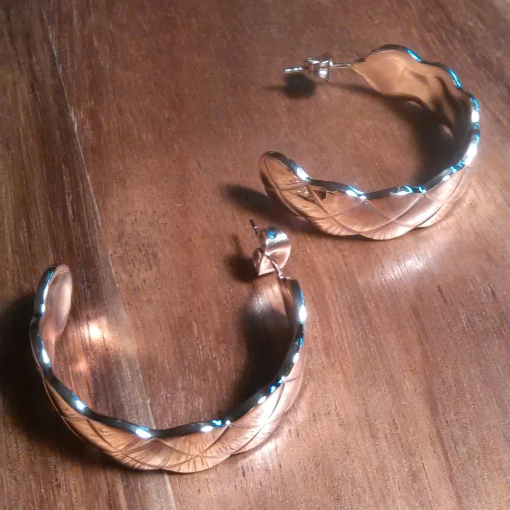 Diamond Cut Ion Plated Rose Gold Stainless Steel Half Hoop Earrings - $22 New With Tags - From MICHELLE