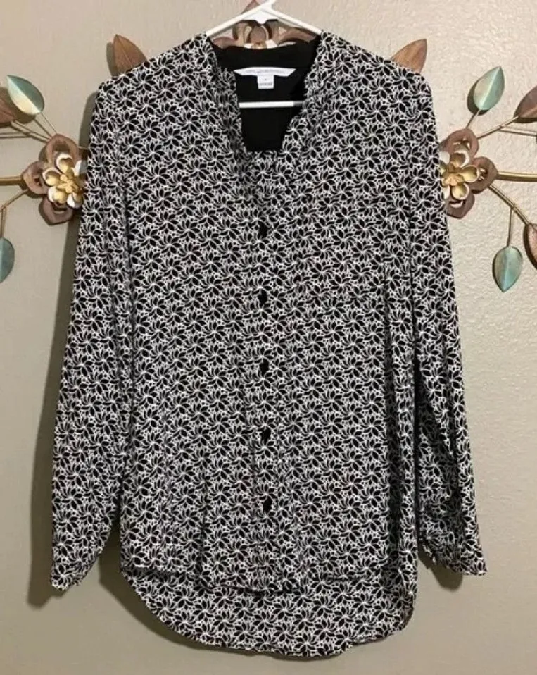 Diane Von Furstenberg Black White Button Front Silk Blouse Size 2 - $26 - From Ana