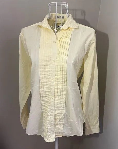 The Diane Von Furstenberg Butter Yellow Pintuck Button Down Shirt in size 10 is a stylish and versat... Show more