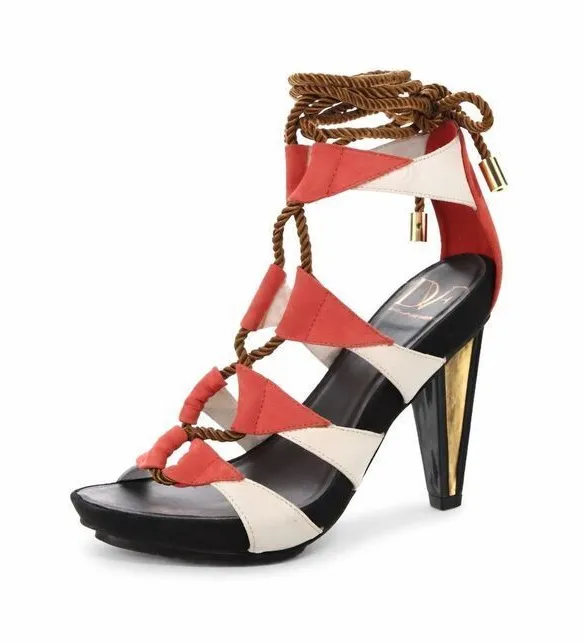 Diane von Furstenberg Leather Colorblock Lace-Up Heels Size 6.5 • Diane von Furstenberg designer he... Show more