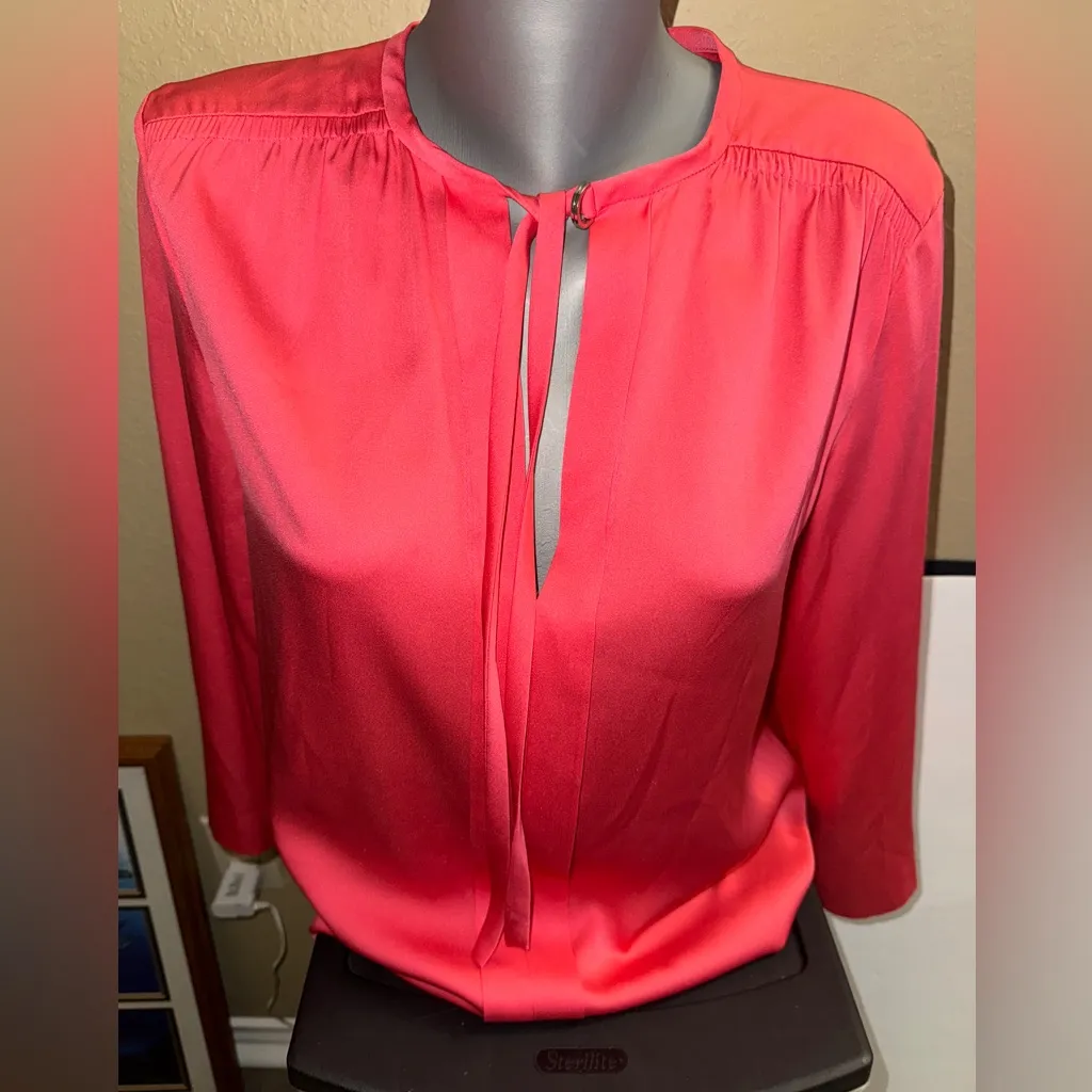 Diane von Fürstenberg Silk Blend Tie-Neck Blouse Top Women’s Small Coral Pink Orange - $45 - From Mari