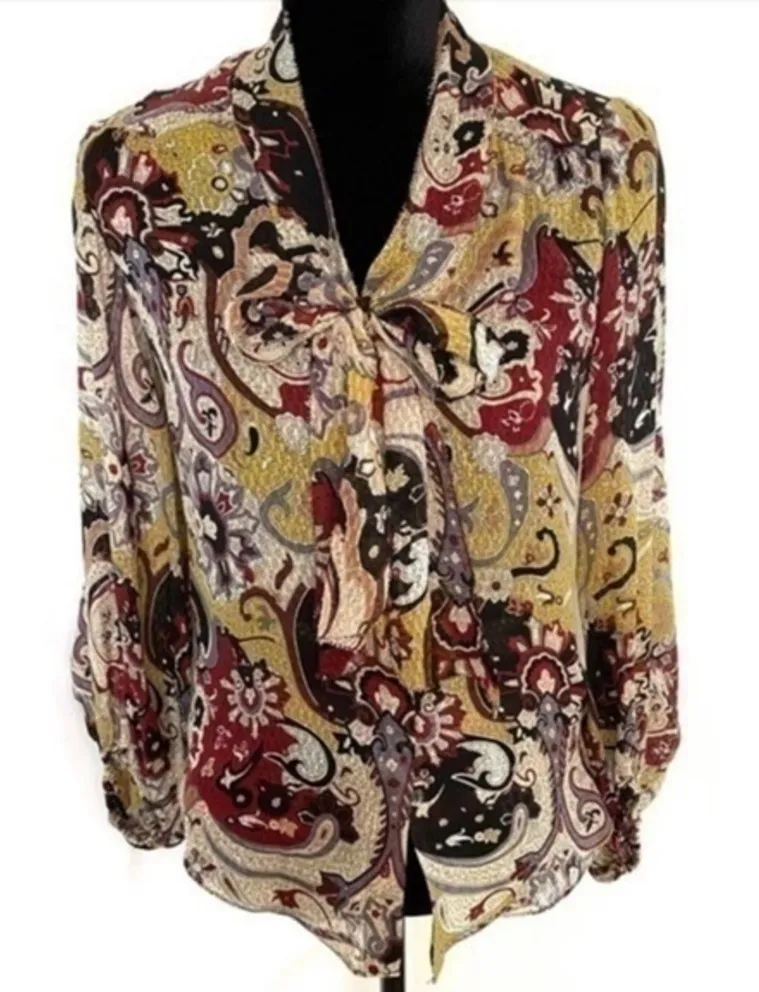 Diane Von Furstenburg Silk Multicolored Floral Paisley Tie Blouse Condition: Excellent • No Flaws... Show more