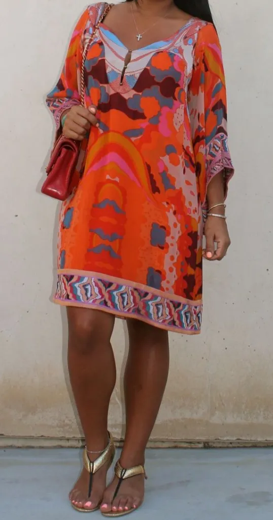 Dvf silk boho mod colorful fall tunic dress casual formal y2k $309 small rare Orange - $155 - From Madi