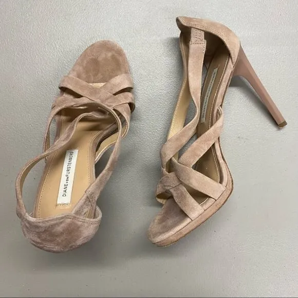 Diane Von Furstenberg DVF High Heel Suede Cream Strappy Shoe Open Toe US Womens Size 7 (37 EUR) In g... Show more