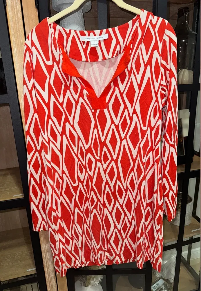 Diane Von Furstenberg silk dress mini long sleeve geometric reina splice vneck Orange Size 12 - $36 - From Filo