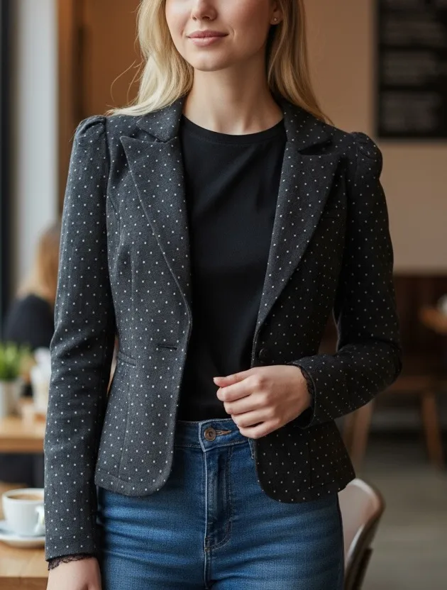 Diane Von Furstenberg Vintage Polka For Lace Ruffle Blazer Y2k size 6 Gray - $56 - From Anna