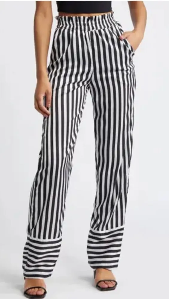DIARRABLU Leer Ben Palazzo Pants Silky Striped Women’s Small Measurements- Total Length: 45in Insea... Show more