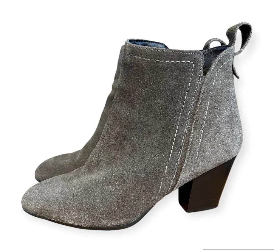Brand: Diba Size: Women's 9.5 Color: Gray/Grey Material: Suede Leather upper Heel size: Great booties for fall and winter! Good condition however heel has some wear on it. Also there's a small loose stitch on upper seam. ( see last 2 pictures) Great boots that can be worn casual with ripped or cuffed jeans for an industrial look or scarf and distressed jeans for a casual fall look Pair the booties with a skirt and turtleneck for a more chic put together look or with a maxi dress. So many options!! Smoke feee clean house.