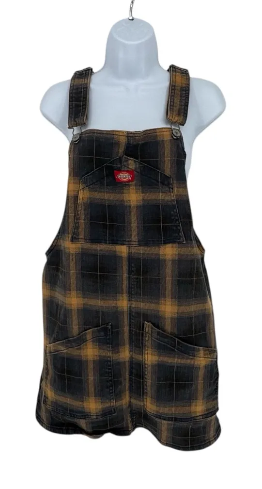 Dickies plaid duck Mini overall dress Brown And Yellow sold at Free People Large - $32 - From Megan