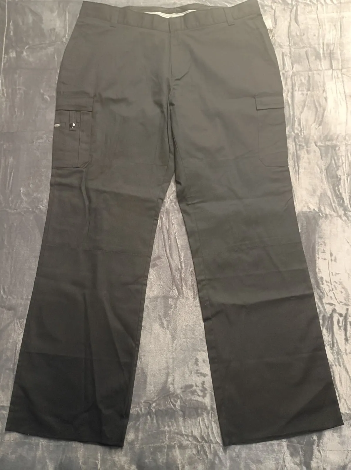 Step into durable comfort and reliable performance with these Dickies Women's EMT Pants. Designed for a casual fit with a straight leg, these pants offer the flexibility and ease of movement you need throughout your day. Engineered with mechanical stretch fabric, they provide exceptional comfort and freedom. The wrinkle-resistant and stain-release finish ensures you look polished and professional, no matter the task. Perfect for demanding work environments or everyday active wear. Measurements: • Waist: 24 in • Inseam: 32 in • Rise: 11 in Style: Pants Occupation: EMT Industry: EMT Material: Polyester Gender: Women Country of Origin: Guatemala Keywords: Dickies pants, work pants, utility pants, uniform pants, stretch fabric, wrinkle resistant, stain release, EMT, medical uniform, industrial, durable, black pants, casual fit