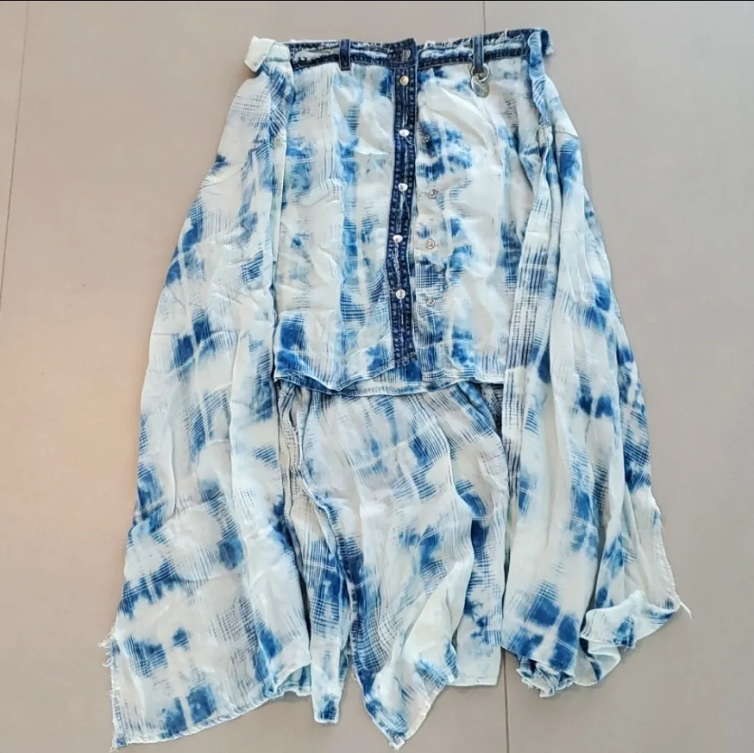 The skirt is made from a flowing lyocell fabric with an asymmetrical hemline and features snap fasteners, bleached effects, unfinished edges and a attached logo charm. High waist, Skirt length- mini. Size 28. Worn once. Flawless.