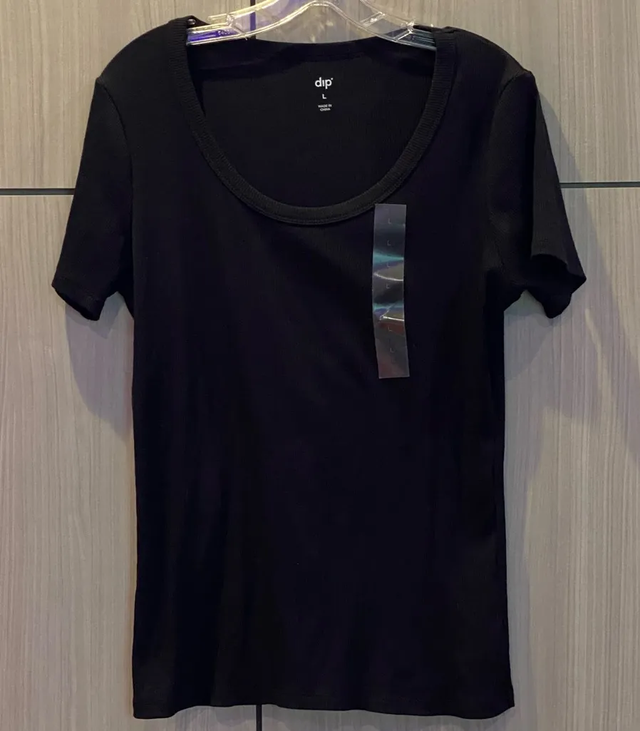 dip Brand Black NEW Scoopneck Crewneck Ribbed Short Sleeve Tee T-shirt Large - $20 New With Tags - From S
