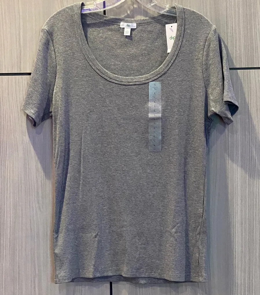 dip Brand Gray NEW Scoopneck Crewneck Ribbed Short Sleeve Tee T-shirt Large - $20 New With Tags - From S