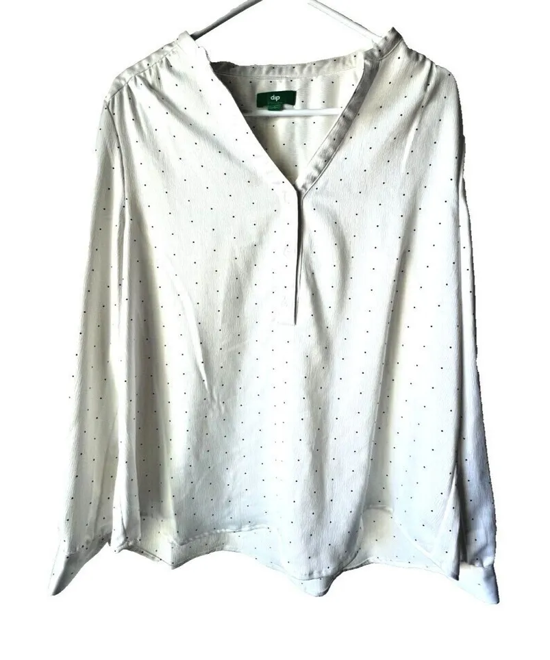 DIP Womens long sleeves blouses V neck pointed elegant casual white size L. Brand DIP Color white 96% POLYESTER 4% spandex Machine wash cold with like colors only non-chlorine bleach when needed tumble dry low cool iron if need Pre-owned
