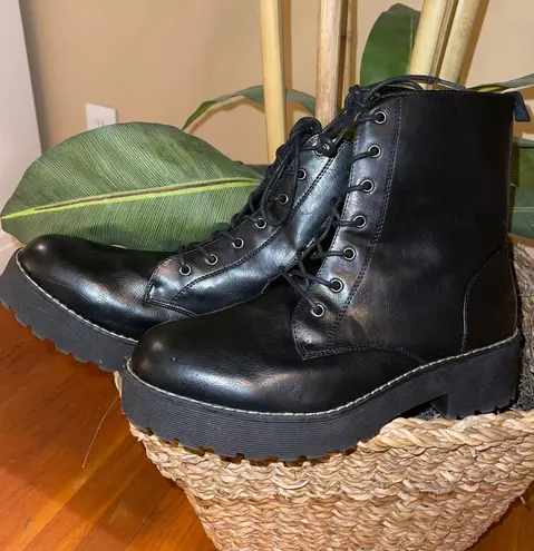 Dirty Laundry Combat boots • Lace-up closure for a custom and secure fit • Classic round toe • Lightly padded insole for added comfort • Durable rubber outsole • Zip-ups both sides • A bit worn on the outsole (not that noticeable without flash) • Excellent condition overall • Minor scratch on the left shoe (last picture)