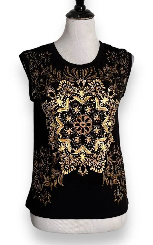 Disney Beauty and The Beast Tee Women Size S Black Gold Sleeveless Shirt NEW No Flaws New with Ta... Show more