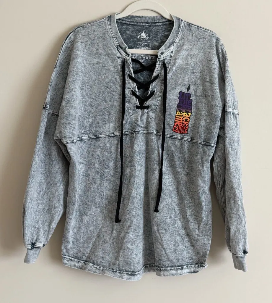 Disney Hocus Pocus Spirit Jersey featuring the “Lit the Black Flame Candle” graphic. Acid wash gray... Show more