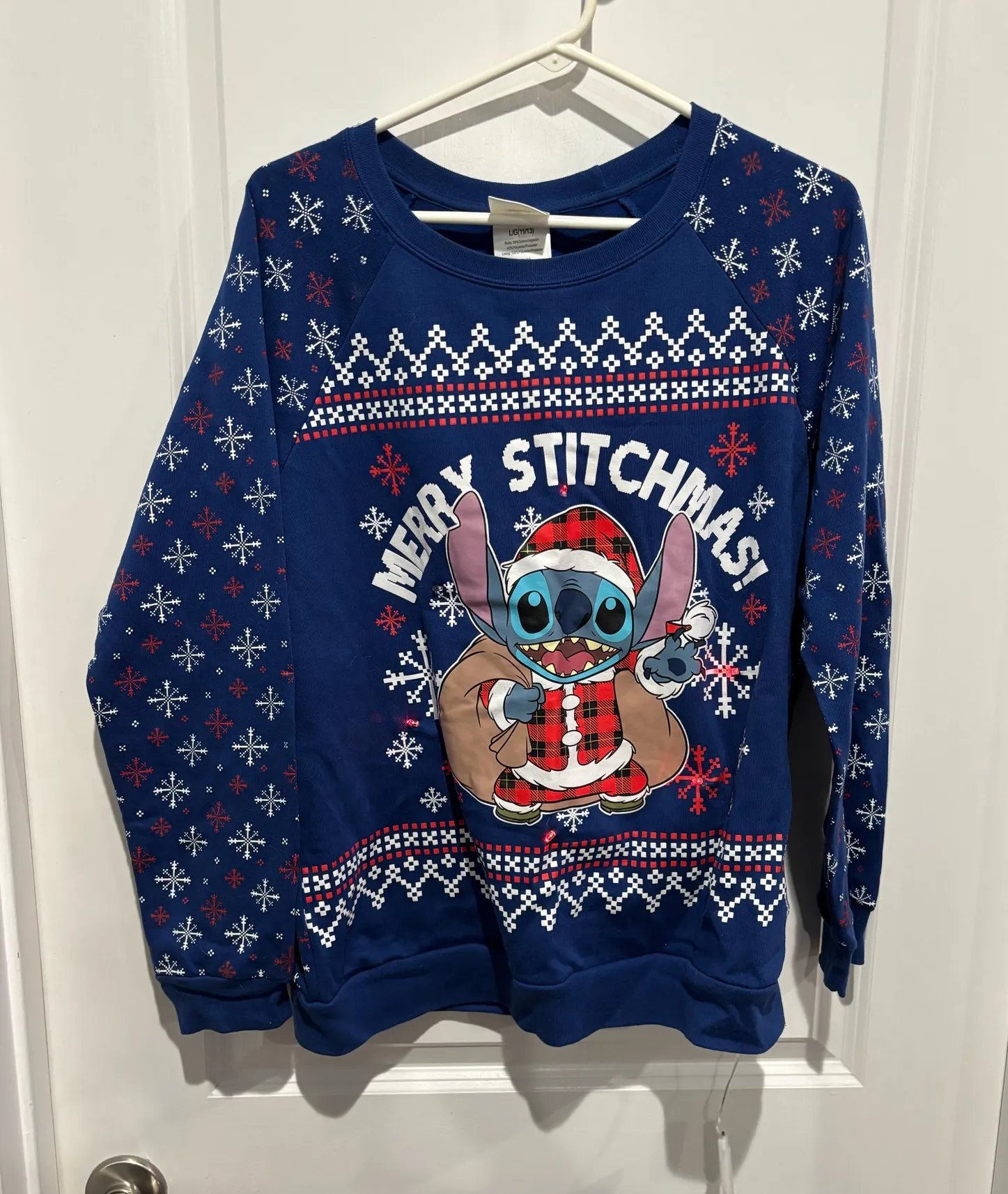 Disney Merry Stitchmas Sweatshirt with working Lights, Sz Juniors L, Too is spot clean only due to a... Show more