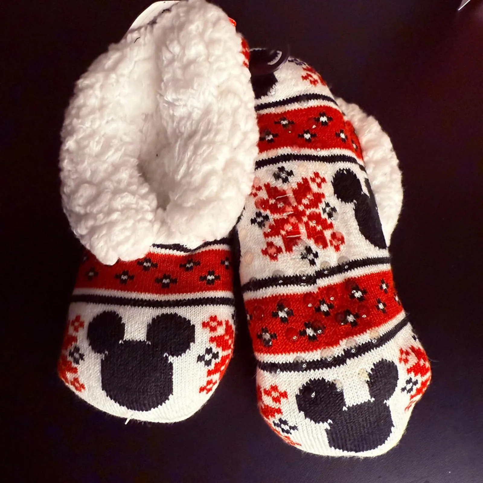 Celebrate the season in cozy style with these Disney Mickey Mouse holiday slippers. Designed with a... Show more