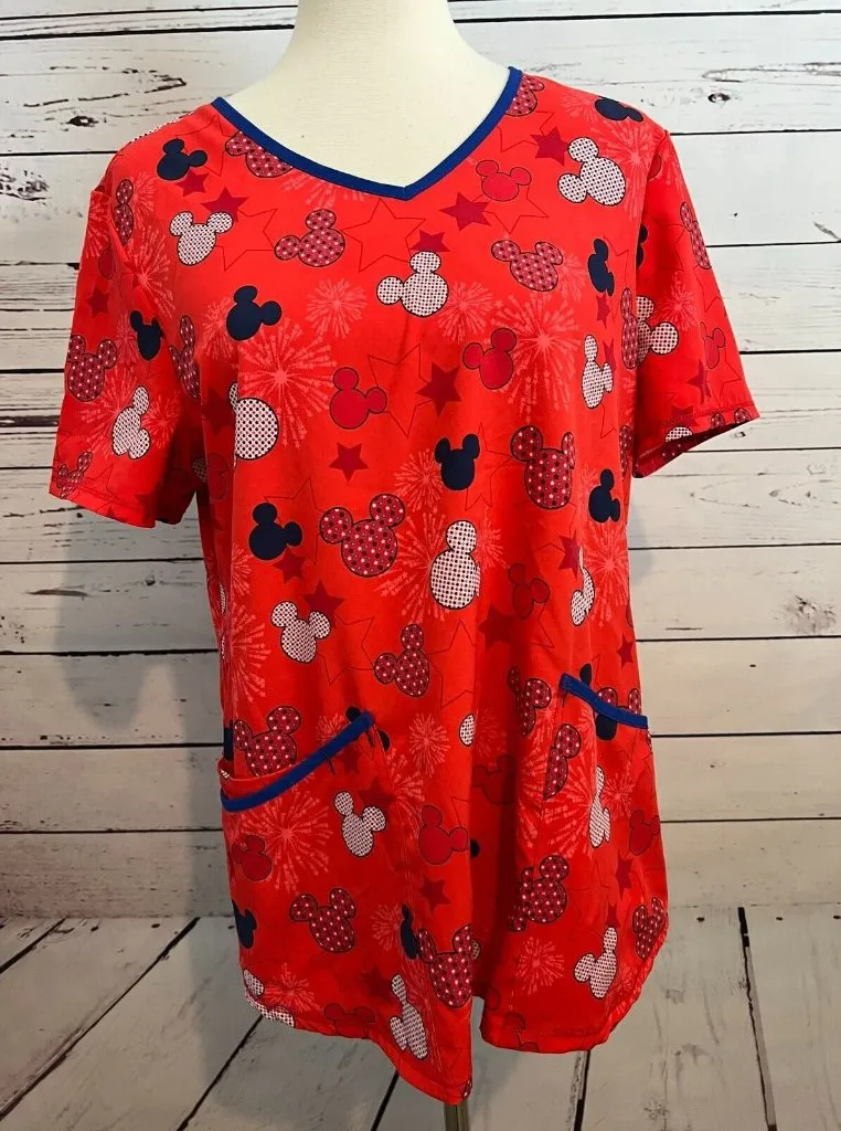 Disney Mickey Mouse Scrub Top Shirt size Large, but size tag is missing. Please check measurements p... Show more