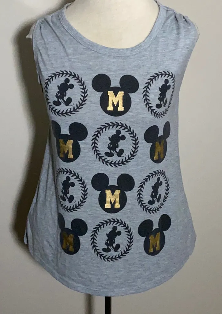 Disney Mickey Mouse tank top shirt Pleated shoulders Gold embossed M inside blacked out silhouette... Show more