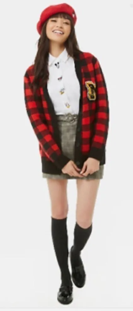 Disney Mickey Mouse X Forever 21 Black/red Checkered plaid Button down Cardigan 90th anniversary... Show more