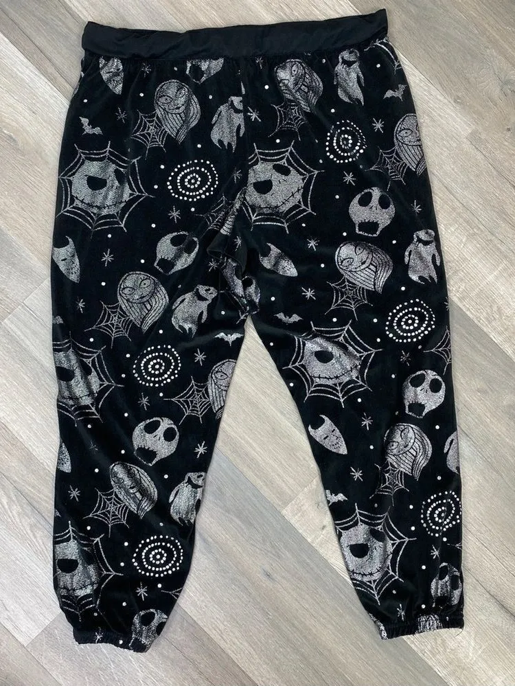 Disney Nightmare Before Christmas Velour Crop Sleep Jogger Pants Size XL 12/14 Onyx black velour... Show more