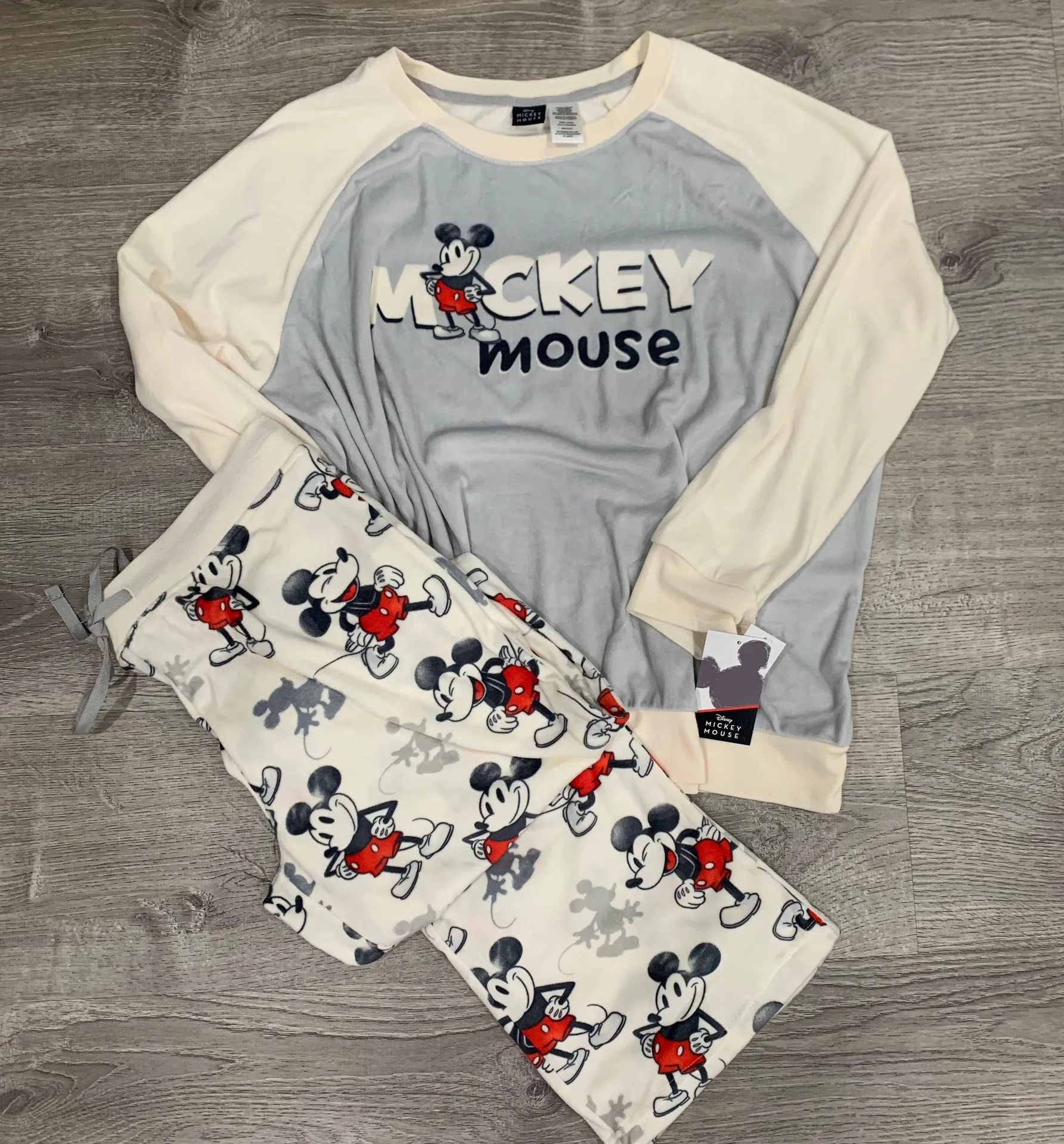 NWT Mickey Mouse Velour Pajama Set Loungewear Sleepwear 2 Piece set Large Gray - $65 New With Tags - From Julia